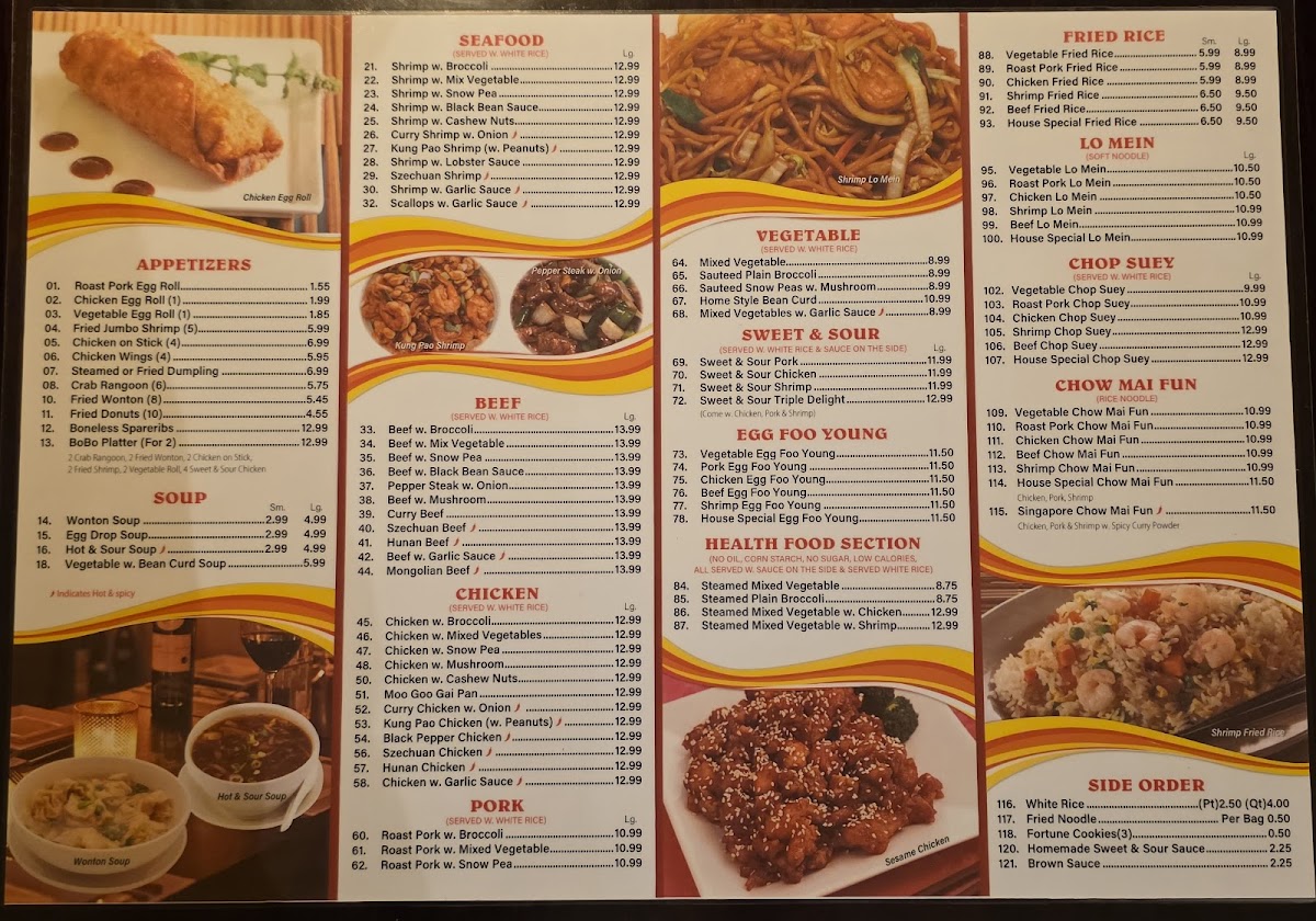 For those drawn to beef, options like Mongolian Beef and Beef with Garlic Sauce showcase the restaurant’s commitment to well-seasoned, tender meats. Soups like Hot & Sour and Wonton provide comforting starters to complement the meal. Customers praise China King for consistent quality and friendly service, highlighting favorites such as Chicken Garlic Sauce, egg rolls, and pork lo mein. Whether dining in or ordering takeout, China King promises a fulfilling experience that blends tradition with fresh, flavorful fare.